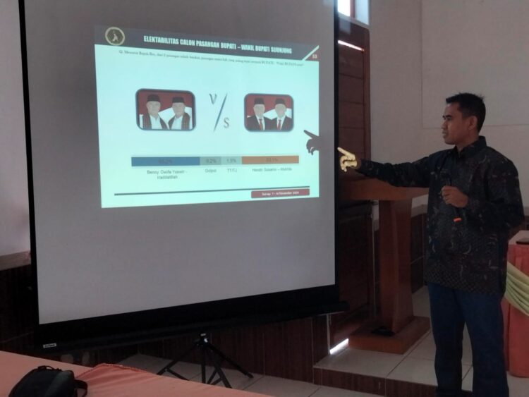 “Survei tersebut melibatkan sebanyak 1.200 responden dengan margin error plus minus tiga persen dengan akurasi hasil mencapai 95 persen. Dilaksanakan pada tanggal 7 hingga 14 November 2024 dengan sistem wawancara tatap muka multistage random sampling. Responden berasal dari seluruh nagari dan kecamatan di Kabupaten Sijunjung,” ujarnya.