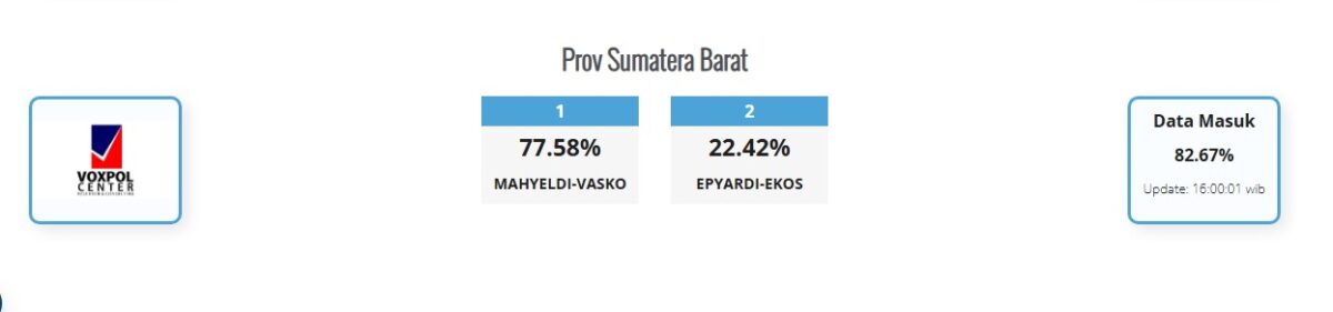 Quick Count Pilgub Sumbar 2024, Mahyeldi-Vasco Unggul 77,58 Persen : Epyardi-Ekos Hanya 22,42 Persen