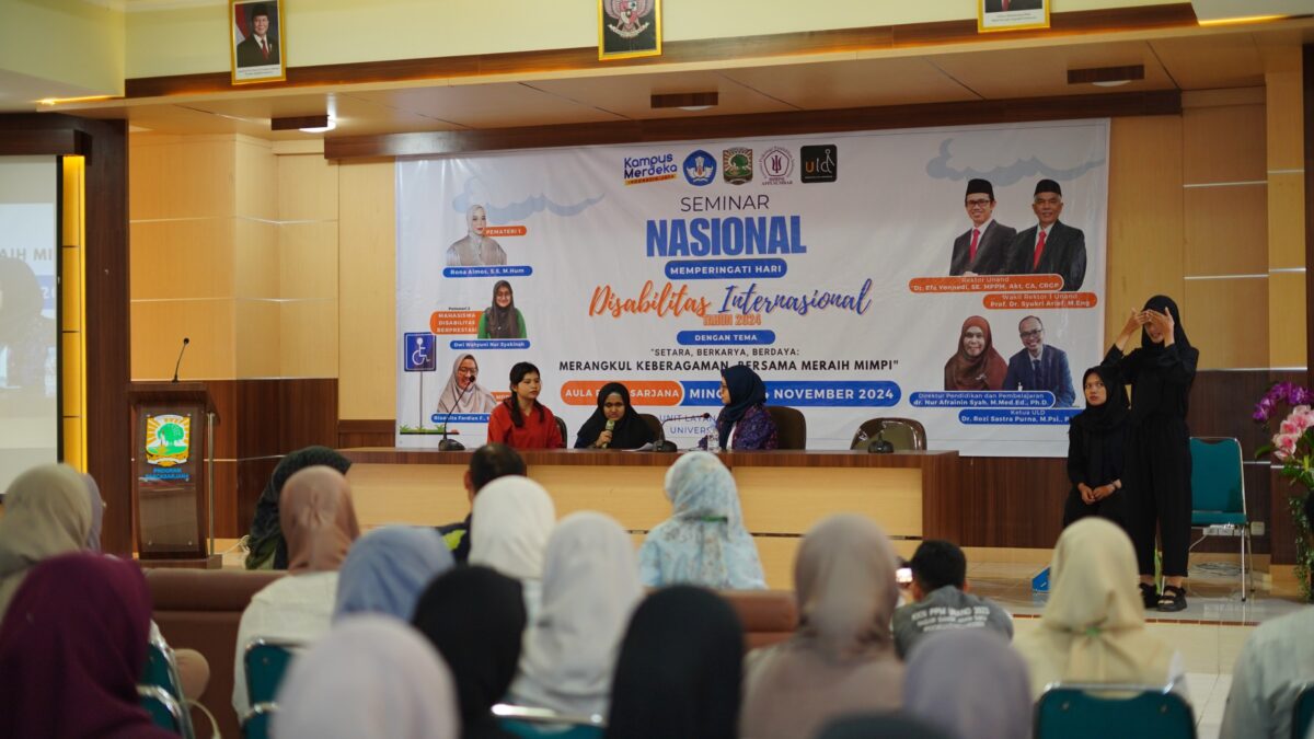 Seminar Nasional menjadi puncak acara dengan menghadirkan narasumber inspiratif seperti Rona Almos, peneliti dan Ketua Forum IntelekTuli, serta Dwi Wahyuni Nur Syakinah, mahasiswa disabilitas berprestasi.