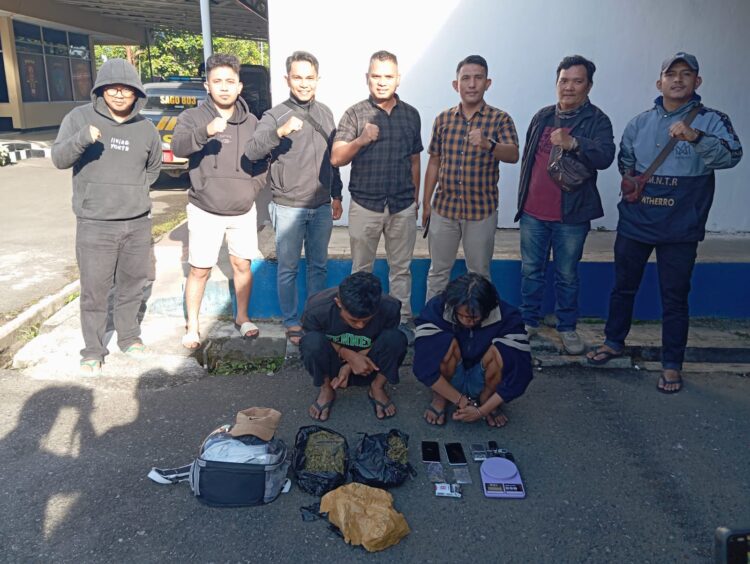 ” Kedua tersangka masuk dalam target operasi kita, hingga pada hari penangkapan keduanya kita dapati sedang membawa narkotika jenis ganja dan sabu-sabu,” ungkap Kasat Narkoba AKP Hendra.