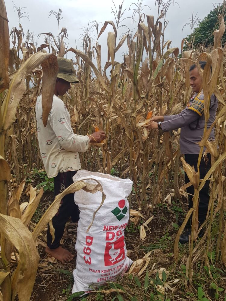PASBAR, HARIANHALUAN.ID — Bhabinkamtibmas Polsek Talamau, Polres Pasaman Barat Aipda Sudiyanto Siregar melaksanakan pemantauan panen jagung yang berada di Koto Panjang, Jorong Kemajuan, Nagari Sinuruik, Kecamatan Talamau, Kabupaten Pasaman Barat, Senin (6/1).
