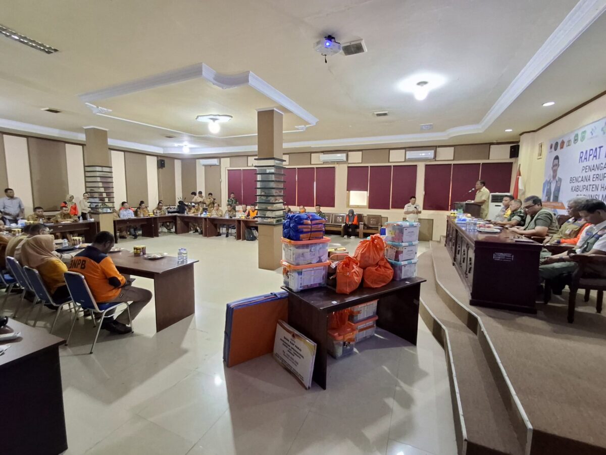 Deputi Bidang Sistem dan Strategi BNPB sebagai perwakilan BNPB yang ditugaskan dalam rangka pendampingan penanganan erupsi Gunung Ibu di Halmahera Barat, Maluku Utara, Raditya Jati secara simbolis menyerahkan bantuan ini kepada Sekretaris Daerah Halmahera Barat di Kantor Bupati Halmahera Barat.