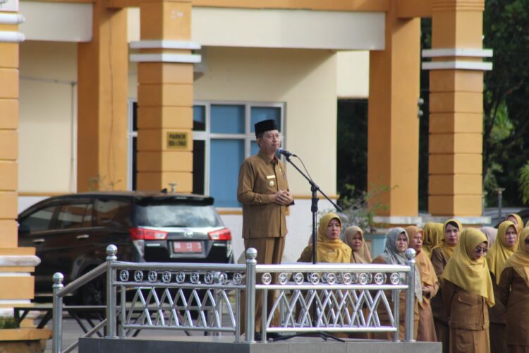 Teks foto : Wabup Risnawanto memimpin apel gabungan di halaman kantor bupati setempat. Osniwati