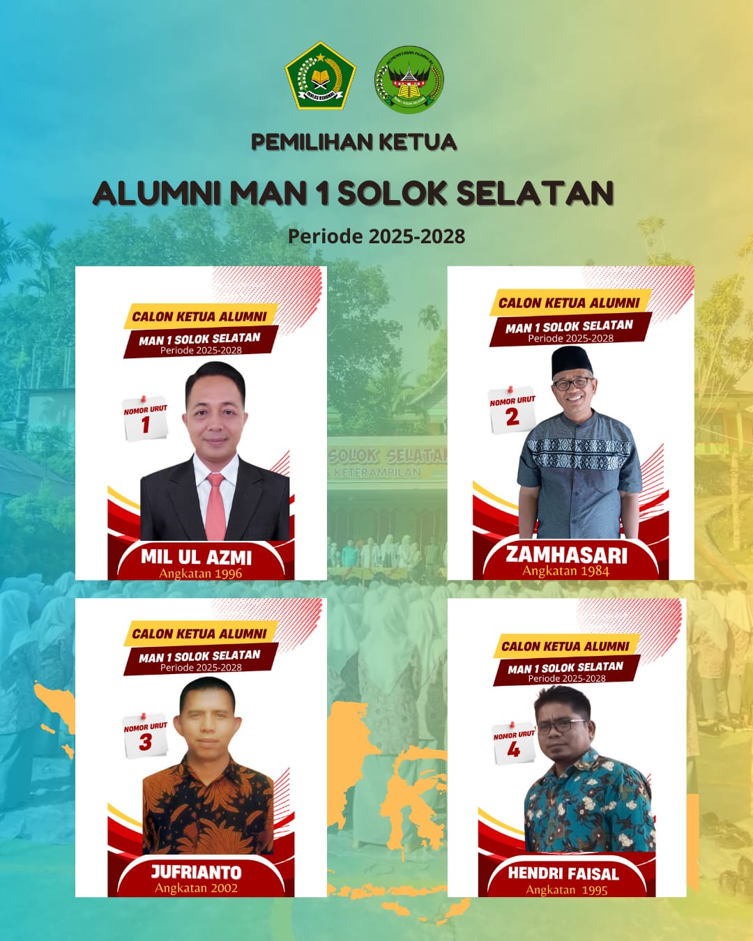 SOLOK SELATAN, HARIANHALUAN.ID – Pemilihan Ketua Alumni Madrasah Aliyah Negeri (MAN) 1 Solok Selatan akan segera dilaksanakan dalam waktu dekat.