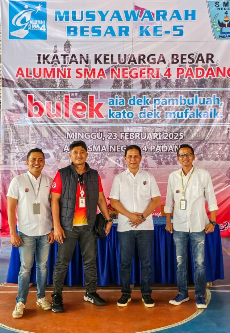 PADANG, HARIANHALUAN.ID – Musyawarah Besar (Mubes) ke-5 Ikatan Keluarga Besar Alumni SMA Negeri 4 Padang, kembali nobatkan Indra Datuk Rajo Lelo sebagai Ketua Alumni.