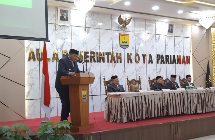 PARIAMAN, HARIANHALUAN.ID- Yota Balad dan Mulyadi mengikuti kegiatan serah terima jabatan Wali Kota dan Wakil Wali Kota Pariaman, Senin (3/2). Pada kesempatan itu, pemimpin kota tabuik itu turut mengulas 12 program unggulan yang akan direalisasikan selama masa jabatan.