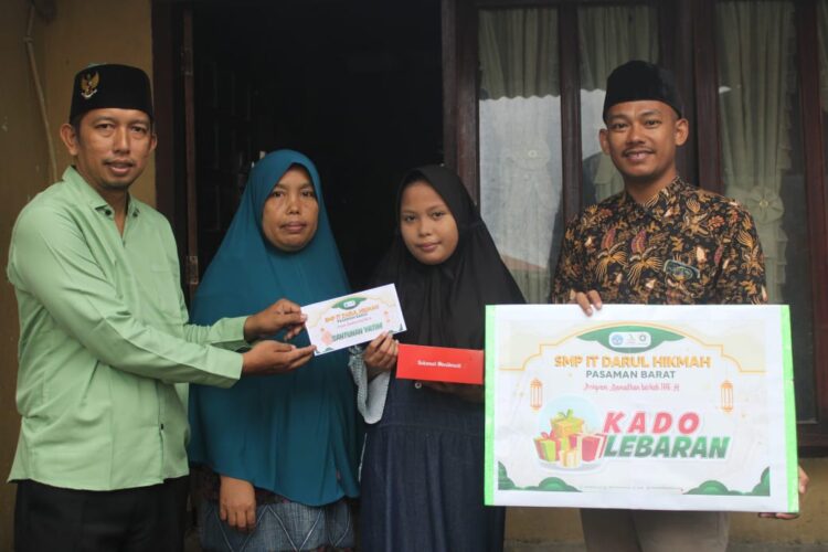 Penyaluran bantuan paket tersebut langsung dibagikan oleh PLH Kepala SMP IT Darul Hikmah, Ustadz Riki Riansyah, S.Pd didampingi oleh Dai Nagari Simpang Tiga, Ustadz Joni Nasution, S.PdI dan Para Ustadz SMP IT Darul Hikmah.
