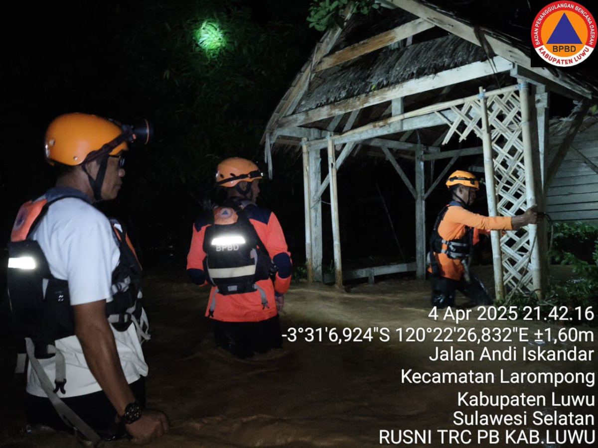 Akibat tingginya intensitas hujan di wilayah bagian hulu sungai menyebabkan banjir merendam Kecamatan larompong dan Kecamatan Suli Barat yang berada di wilayah administrasi Kabupaten Luwu, Provinsi Sulawesi Selatan pada Jumat (4/4) pukul 21.15 WITA.