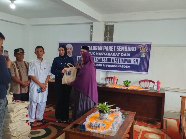 LUBUKSIKAPING, HARIANHALUAN.ID – Wujudkan kepedulian terhadap masyarakat, Anggota DPR RI dari Fraksi Partai Nasdem, Cindy Monica Salsabila serahkan puluhan bantuan paket Sembako untuk anak-anak Panti Asuhan Yayasan Bhakti Ibu, Kenagarian Tanjung Beringin Utara, Kecamatan Lubuk Sikaping, Kabupaten Pasaman, Jum’at (25/4).