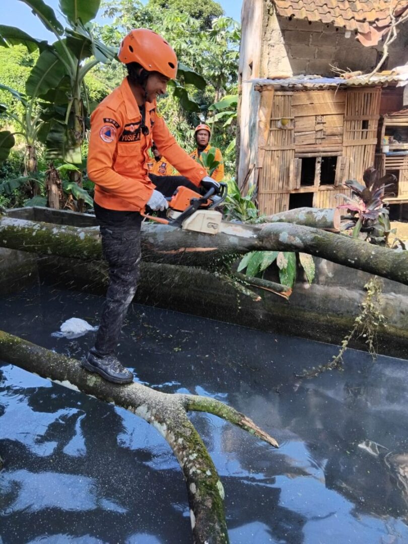 Hujan dengan intensitas tinggi disertai angin kencang menyebabkan beberapa unit rumah rusak di Kabupaten Bogor, Jawa Barat, Sabtu (10/5). BPBD Kabupaten Bogor melaporkan sebanyak tujuh unit rumah rusak ringan, satu unit rumah rusak sedang dan tiga unit rumah rusak berat akibat angin kencang. BPBD dan tim gabungan menangani beberapa pohon tumbang dan sebagian bangunan rumah terdampak telah diperbaiki.
