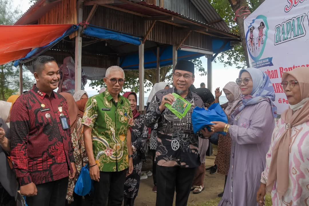 Penyerahan bantuan dilakukan secara simbolis oleh Wakil Wali Kota Padang, Maigus Nasir, di Pantai Pasir Jambak, Kelurahan Pasie Nan Tigo, Kecamatan Koto Tangah, Kamis (22/5/2025).