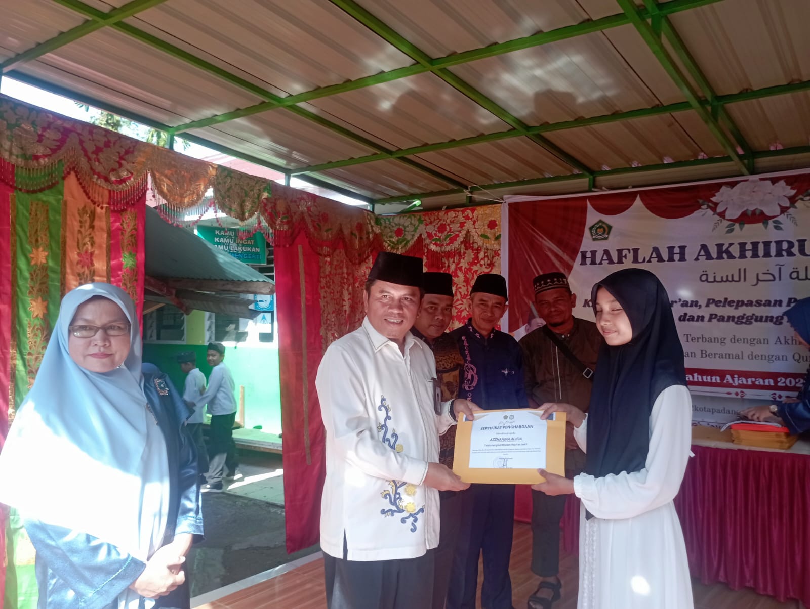 Kakankemenag didampingi Khalil Chaniago, Kepala MIN 2 Padang, komite melaksanakan proses wisuda tahfiz secara simbolis kepada perwakilan peserta.
