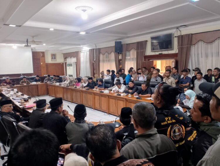 Keterangan Foto : Ninik Mamak dan Parik Paga Nagari Kurai Limo Jorong ketika melakukan audiensi dengan anggota DPRD dan Kepala Cabang Dinas Pendidikan Wilayah I Sumbar di gedung DPRD Bukittinggi, Senin (14/7) Gatot.