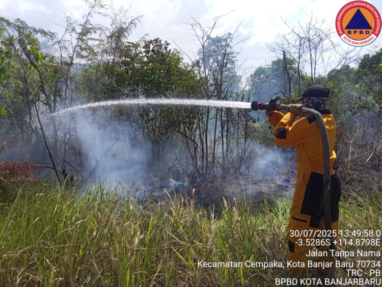 Menanggapi situasi ini, Badan Penanggulangan Bencana Daerah (BPBD) Provinsi Kalimantan Selatan bergerak cepat dengan melakukan observasi dan pendataan di lokasi kejadian. Upaya pemadaman dilakukan secara langsung di lapangan, dengan dukungan satu unit water supply berkapasitas 4.000 liter yang digunakan untuk membantu proses pemadaman api di area terdampak. Kondisi cuaca panas dan lahan yang kering akibat musim kemarau menjadi tantangan dalam penanganan kebakaran ini.