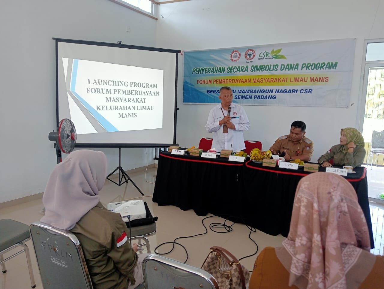 Sekretaris Perusahaan PT Semen Padang, Win Bernadino, menyampaikan apresiasi kepada Forum Pemberdayaan Masyarakat Kelurahan Limau Manis atas kolaborasi dan komitmen mereka dalam menjalankan program TJSL perusahaan.