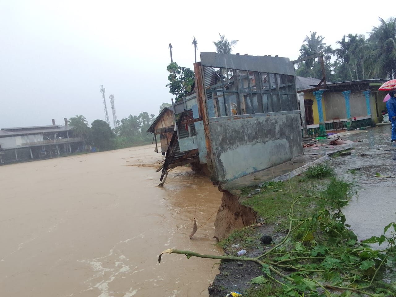 Arus yang deras mengikis tanah sepanjang satu kilo meter mengakibatkan longsor. Dalam waktu singkat, tiga rumah di atasnya ikut hanyut disapu arus sungai yang deras.