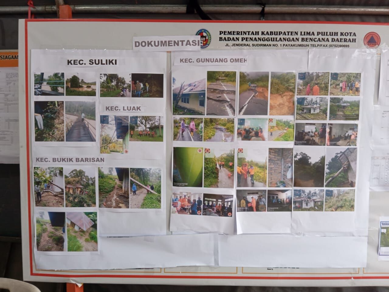 Badan Penanggulangan Bencana Daerah Kabupaten Lima Puluh Kota mencatat, dari 13 kecamatan, dampak bencana terparah bagian utara atau kawasan Mudiak seperti Gunuang Omeh, Bukit Barisan dan Suliki.