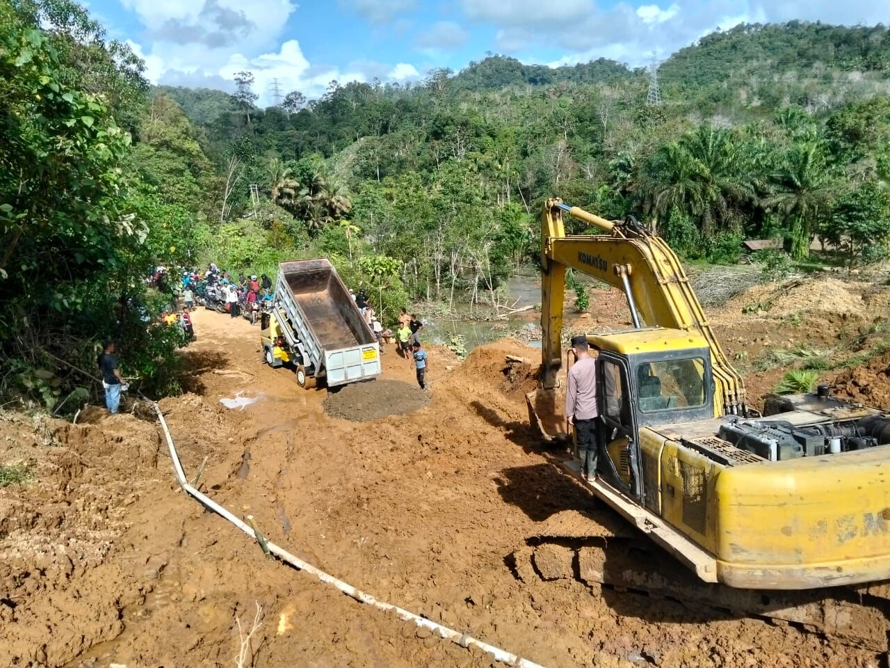 Kapolsek Talamau, IPTU Donal, menegaskan bahwa kehadiran personel kepolisian di lokasi bukan hanya untuk pengamanan, melainkan turun tangan langsung dalam upaya teknis pembukaan jalan.