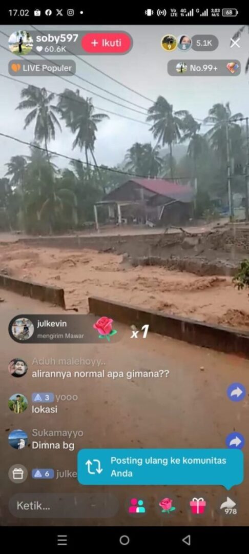 “Bapak-bapak TNI-Polri alah sampai. Warga diminta mundur, jauah dari batang aia. Bahanyo tambah gadang. Tim SAR lah waspadai,” ujarnya dalam siaran tersebut.