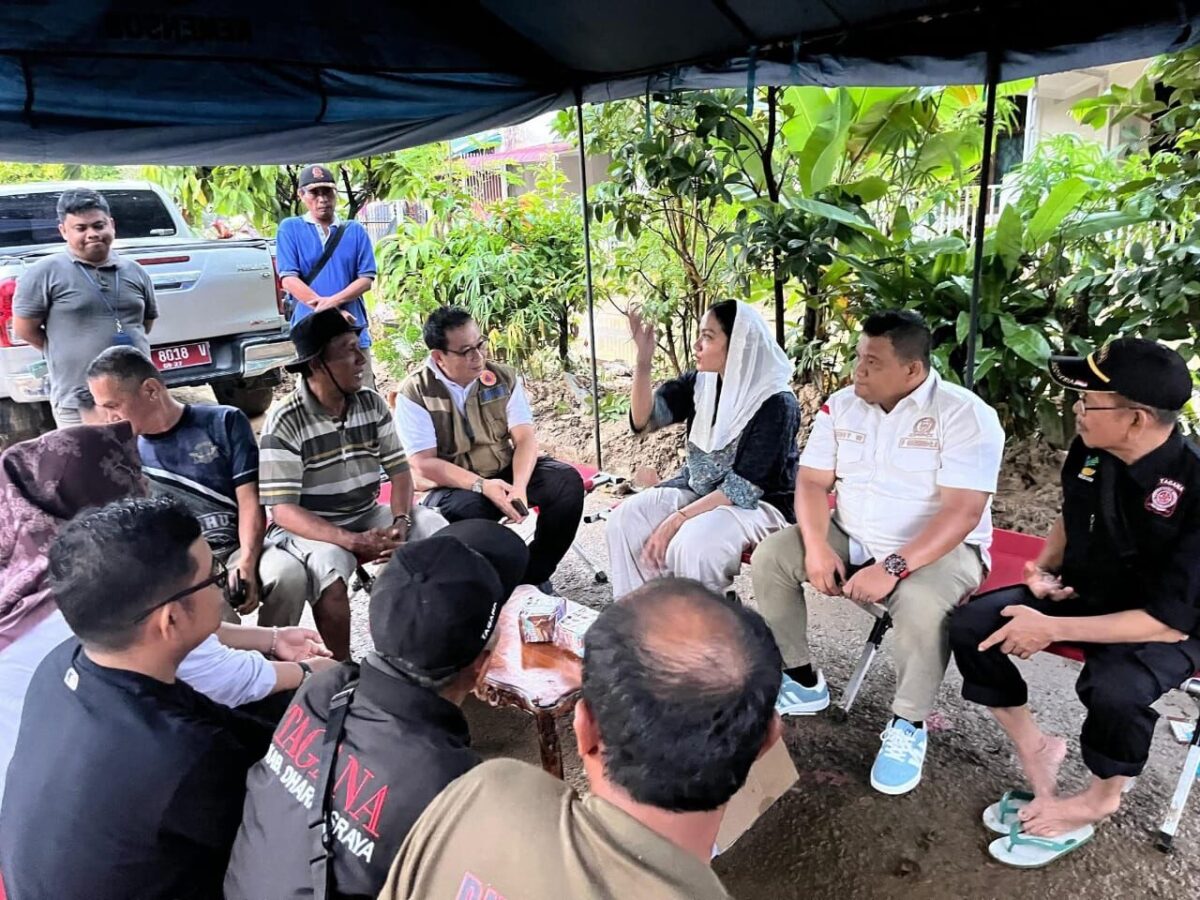 PADANG, HARIANHALUAN.ID — Bupati Dharmasraya Annisa Suci Ramadhani meninjau pos relawan pasca bencana hidrometeorologi yang didirikan Pemerintah Kabupaten Dharmasraya di Perumahan Taruko, Tabiang Banda Gadang, Kecamatan Nanggalo, Padang, Minggu (07/12/2025)