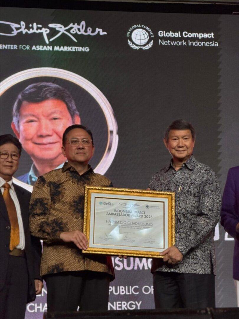 Pada sesi Indonesia Impact Ceremony, Irman menyerahkan “Indonesia Ambassador Award” kepada Hashim Djojohadikusumo, disaksikan Founder MarkPlus Hermawan Kertajaya serta Presiden IGCN Y.W. Junardy, dalam rangkaian The 20th MarkPlus Conference 2026 di Jakarta yang digelar di Ballroom, The Ritz-Carlton Jakarta, Pacific Place, Kamis (11/12/2025).