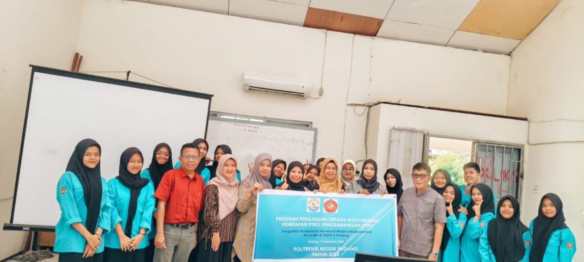 HARIANHALUAN. ID – Politeknik Negeri Padang (PNP) terus memperkuat perannya dalam mencetak sumber daya manusia vokasi yang siap kerja. Melalui kegiatan Pengabdian kepada Masyarakat (PkM), PNP menggelar pelatihan penggunaan Accurate Accounting Software bagi siswa dan guru Akuntansi SMKN 4 Padang, Rabu (11/12) di Laboratorium Komputer Akuntansi sekolah tersebut.