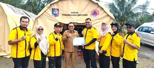 Kehadiran perantau IKTD Kota Batam disambut langsung Bupati Tanah Datar Eka Putra, SE. MM di posko bantuan utama di nagari Batu Taba, kecamatan Batipuh Selatan, Senin (15/12/2025).