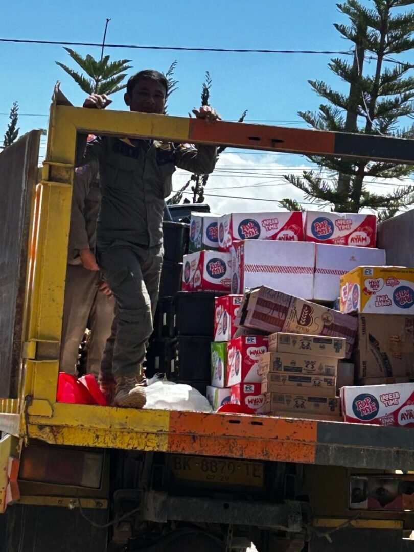 Keterangan foto : Pengiriman logistik ke titik pengungsian Sopogodang, Parbotihan, Kabupaten Humbang Hasundutan, pada Senin (15/12). Sumber: BNPB. IST