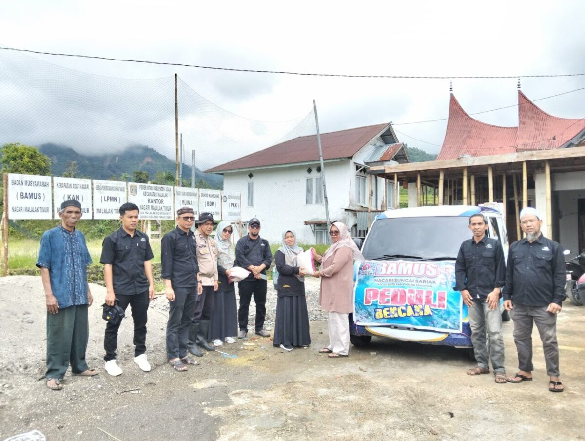 Kegiatan sosial ini dipimpin langsung oleh Ketua Bamus Nagari Sungai Sariak, Anasrul didampingi seluruh jajaran Bamus, serta tokoh masyarakat Nagari Sungai Sariak. Kehadiran rombongan ini sebagai bentuk kepedulian dan solidaritas terhadap masyarakat yang terdampak bencana alam.