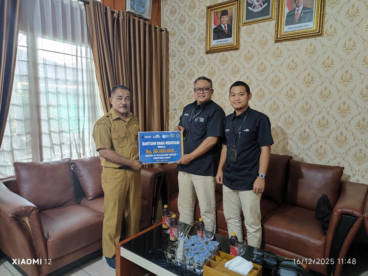 Penyerahan bantuan dilakukan secara simbolis oleh Branch Manager PT TASPEN Cabang Padang, Kabul Wibowo, kepada Kepala SMKN 1 Sumatera Barat,Selasa (16/12) bertempat di SMKN 1 .Pada Program ini diharapkan dapat meningkatkan kenyamanan dan kelayakan masjid sebagai pusat kegiatan ibadah, pembinaan karakter, serta penguatan nilai-nilai keagamaan bagi siswa dan civitas sekolah.