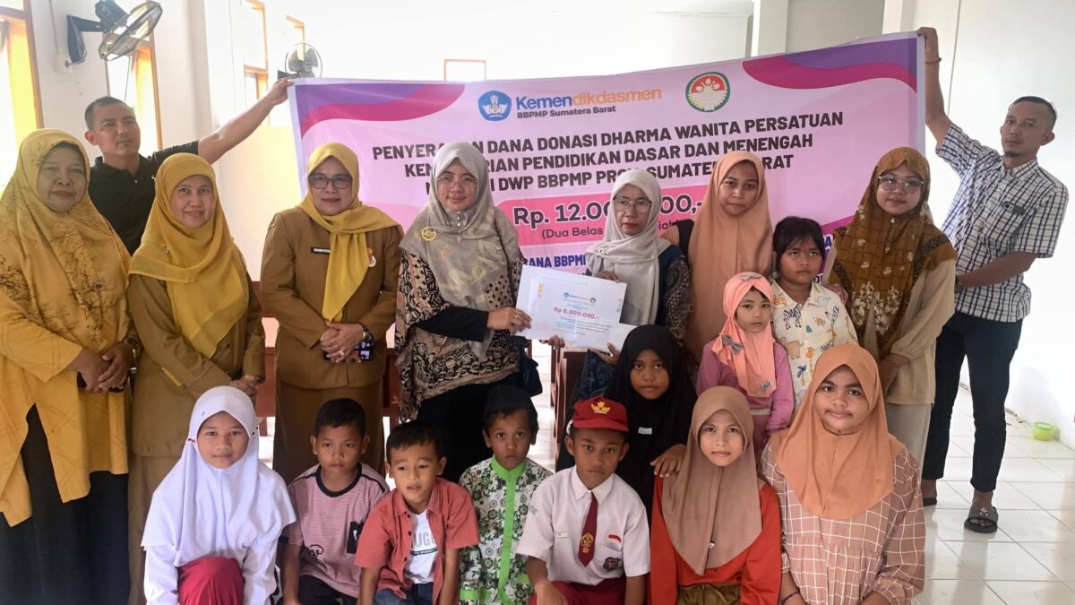 PADANG, HARIANHALUAN.ID – Pelajar Sekolah Dasar Negeri (SDN) 49 Batang Kabung yang sekolahnya disapu banjir bandang akhir bulan lalu menerim bantuan dari Dharma Wanita Persatuan (DWP) Kemendikdasmen Provinsi Sumatra Barat berupa uang tunai senilai Rp6.000.000 dan paket school kit kepada.