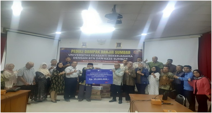 PADANG, HARIANHALUAN.ID – Universitas Ekasakti (Unes) kerja sama dengan Bank Tabungan Negara (BTN) Cabang Padang dan Kerukunan Keluarga Sulawesi Selatan (KKSS) Sumatera Barat peduli dampak banjir bandang Sumbar. Kamis (11/12).