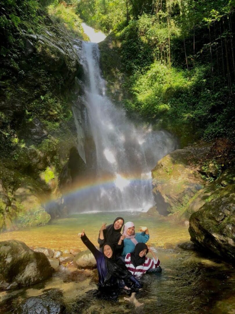 Pada rentang waktu sekitar pukul 08.00 hingga 11.30 WIB, sinar matahari yang menembus celah pepohonan kerap memantul pada percikan air terjun dan memunculkan lengkung pelangi yang memukau. Fenomena alam inilah yang kemudian mengukuhkan sebutan Air Terjun Pelangi, sekaligus menjadi daya tarik utama bagi wisatawan yang ingin menyaksikan keindahan unik tersebut secara langsung.