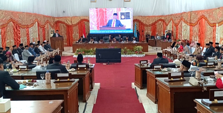 Dalam sambutannya, Gubernur Mahyeldi menyampaikan peringatan hari jadi daerah merupakan momentum untuk bersyukur sekaligus refleksi atas perjalanan pembangunan yang telah dilalui.