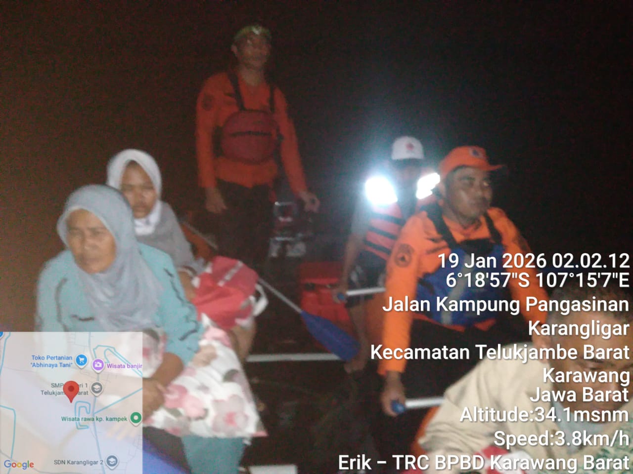 Proses evakuasi warga terdampak banjir di wilayah Kabupaten Karawang, Senin (19/1). Foto: BPBD Kab. Karawang.