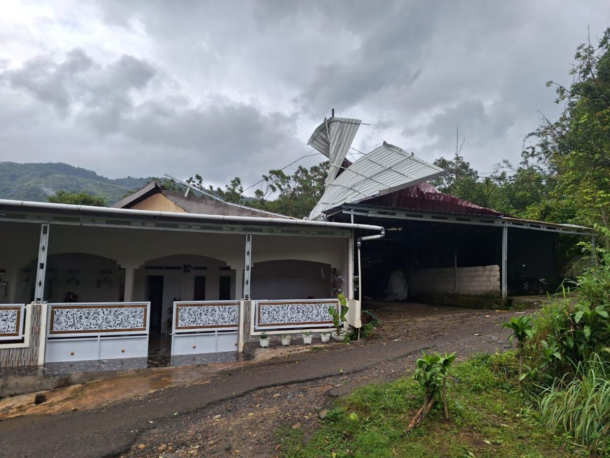Sejumlah rumah terdampak angin kencang di Dusun Pabundukang, Desa Paccellekang, Kecamatan Pattalassang, Kabupaten Gowa, Sulawesi Selatan pada Selasa (20/1). Sumber foto: BPBD Kab. Gowa