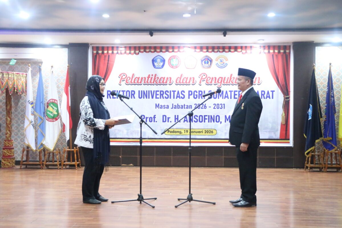 Berdasarkan Surat Keputusan PB PGRI PGRI Nomor 86/kep/pb/22/2025 tentang Pengangkatan Rektor PGRI Sumbar masa jabatan 2026 – 2031 yang dibacakan Ketua Pengurus BPH Dr Dasrizal MP, Prof Ansofino kembali dilantik dan dikukuhkan sebagai Rektor UPGRISBA periode 2026 – 2031.