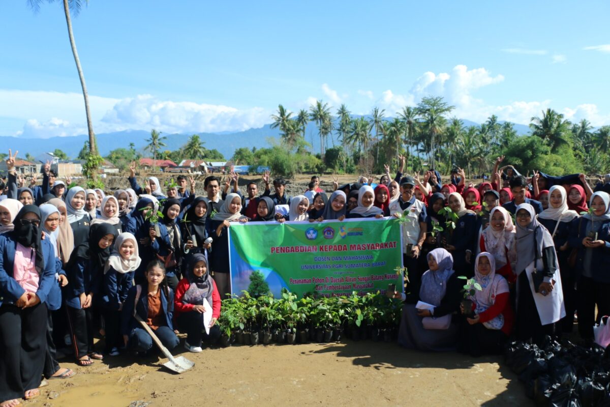 PADANG, HARIANHALUAN.ID – Peduli lingkungan dan juga korban bencana, tim dosen serta mahasiswa Universitas PGRI Sumatera Barat (UPGRISBA) menggelar kegiatan pengabdian kepada masyarakat bertema “Penanaman Pohon di Daerah Aliran Sungai Batang Kuranji dan Pemberdayaan Masyarakat sebagai Upaya Konservasi Lingkungan Hidup”, Sabtu (10/1).
