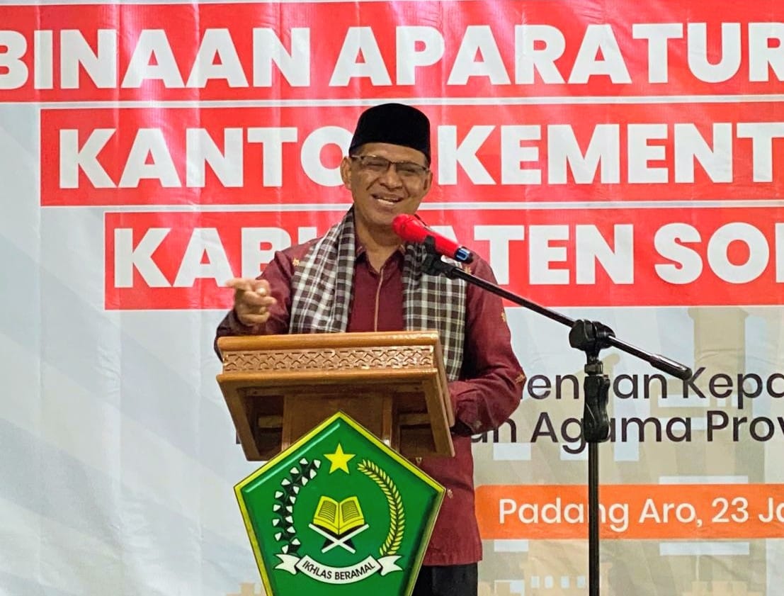 HARIANHALUAN. ID – Rangkaian kunjungan Kepala Kantor Wilayah (Kakanwil) Kementerian Agama (Kemenag) Sumbar didampingi Ketua Dharma Wanita Persatuan (DWP) Kanwil Kemenag Sumbar Ny. Nursofia Mustafa ke Kabupaten Solok (Solsel) diisi dengan silaturrahmi dan pembinaan aparatur sipil negara (ASN) jajaran Kankemenag Solsel.