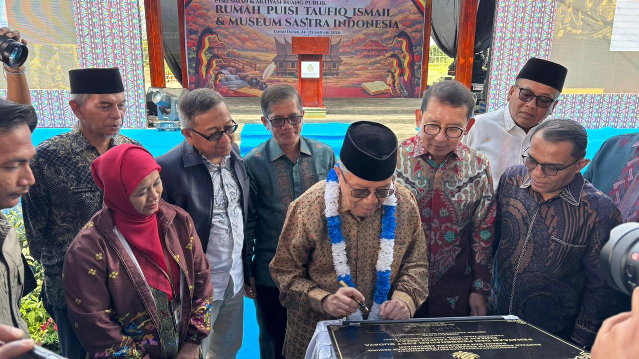 TANAH DATAR, HARIANHALUAN.ID – Menteri Kebudayaan RI, Fadli Zon resmikan dan aktivasi ruang publik Rumah Puisi Taufiq Ismail yang kini diperluas fungsinya menjadi Museum Sastra Indonesia. Berlokasi di kawasan Aie Angek, Kabupaten Tanah Datar, Sumatera Barat, peresmian pada hari Sabtu (24/1/2026) ini menjadi tonggak penting sebagai ruang apresiasi, pengingat jejak sastra, sekaligus upaya konkret untuk memastikan ekosistem sastra di Tanah Air semakin lestari.