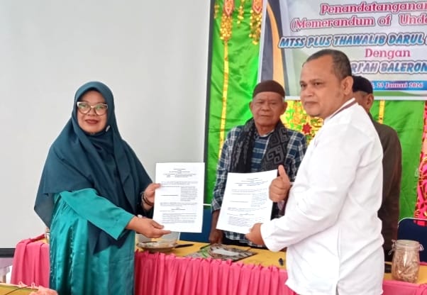 TANAH DATAR, HARIANHALUAN.ID – PT. BPR Syariah Balerong Bunta resmi menandatangani Memorandum of Understanding (MoU) dengan MTs Thawalib Darul Huda Rao-Rao, Kecamatan Sungai Tarab, Jumat (23/1). Hal ini merupakan upaya untuk meningkatkan literasi keuangan syariah dan pengembangan pendidikan berbasis ekonomi Islam.