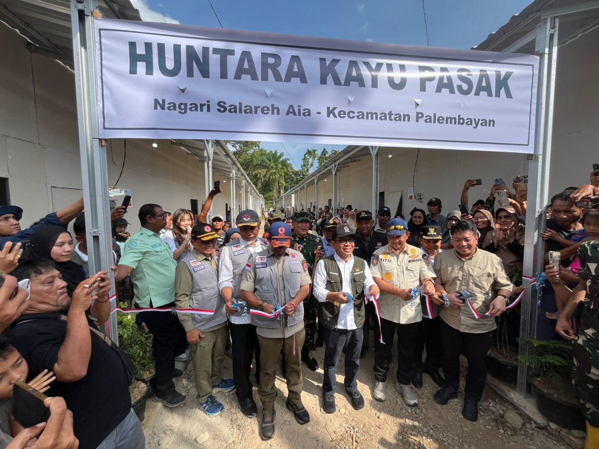 Peresmian huntara tersebut dilakukan oleh Menko PMK, Pratikno bersama Menteri Dalam Negeri (Mendagri), Muhammad Tito Karnavian serta Kepala BNPB, Letjen TNI Suharyanto. Secara simbolis, peresmian dan penyerahan kunci dilakukan di huntara yang berada di Lapangan Kayu Pasak, Jorong Kayu Pasak, Nagari Salareh Aia, Kecamatan Palembayan, Kabupaten Agam.