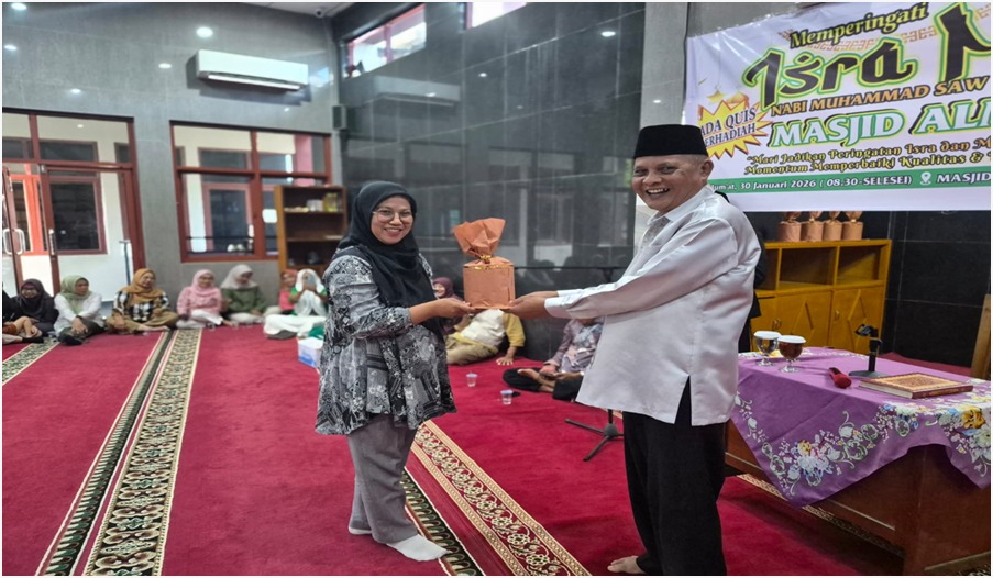 Pemenang yang mendapat bingkisan diserahkan oleh Penceramah Isra Miraj, Rektor Unes, Ketua YPTP, Warek 1, Dekan Fisipol dan penyerahan hadiah berupa amplop diserahkan oleh Prof. Dr. H. Agussalim, S.E., M.S., MCE. Ketua Masjid Al Mustari Unes-AAI. (relis)