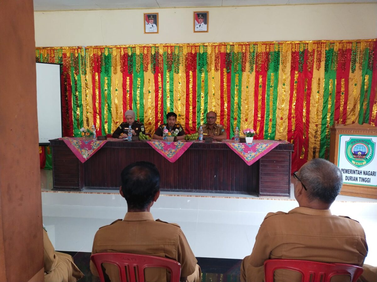 Wali Nagari Durian Tinggi, Hendra Gunawan, dalam sambutannya menyampaikan ucapan terima kasih kepada Kejaksaan Negeri Pasaman yang telah hadir langsung memberikan sosialisasi dan pencerahan hukum kepada perangkat nagari.