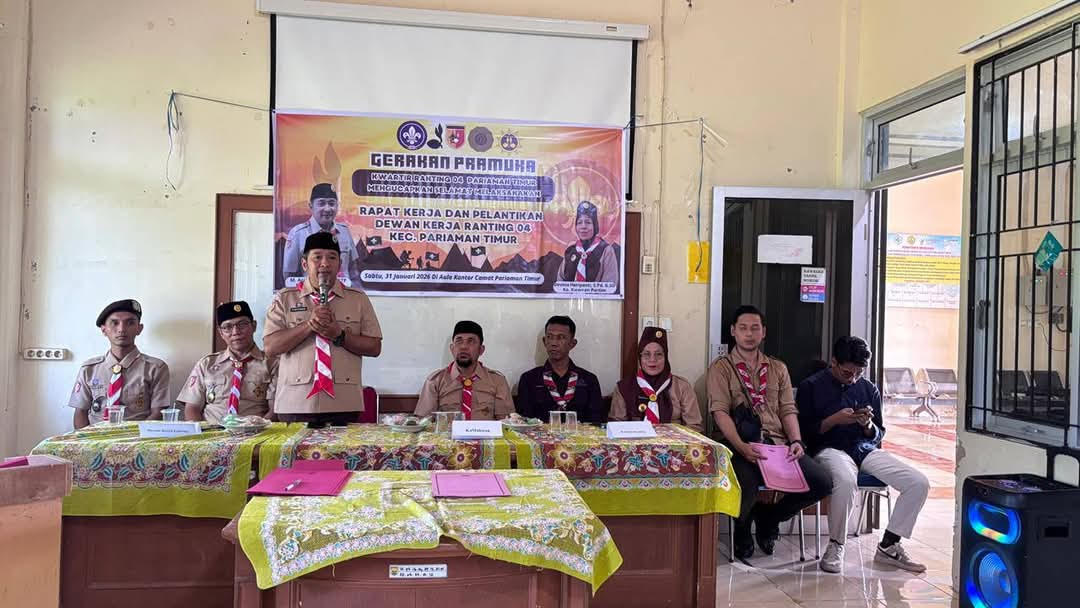 Pelantikan dan rapat kerja dipimpin langsung oleh Ketua Majelis Pembimbing Ranting (Kamabiran) Pariaman Timur, Arif Gunawan, bersama Sekretaris Kecamatan Pariaman Timur. Kehadiran unsur pimpinan kecamatan menjadi bentuk dukungan terhadap keberlangsungan pembinaan Pramuka di wilayah tersebut.