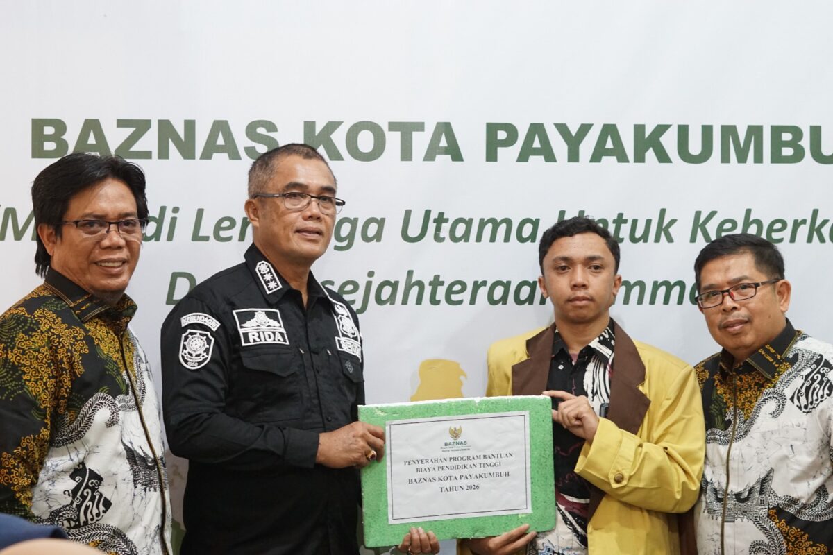 PAYAKUMBUH, HARIANHALUAN.ID- Pemerintah Kota (Pemko) Payakumbuh bersama Badan Amil Zakat Nasional (Baznas) Kota Payakumbuh kembali menunjukkan komitmennya dalam mendukung dunia pendidikan dengan menyalurkan bantuan sosial pendidikan bagi mahasiswa kurang mampu, Kamis (5/2/2026), di Kantor Baznas Kota Payakumbuh.