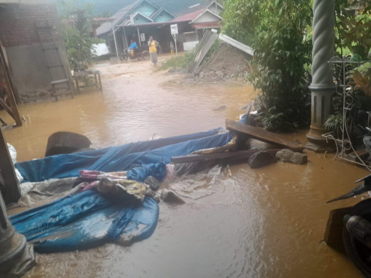 ” Beberapa rumah penduduk juga sudah dimasuki banjir berwarna keruh,” sebut Hendri Masri Uwo.