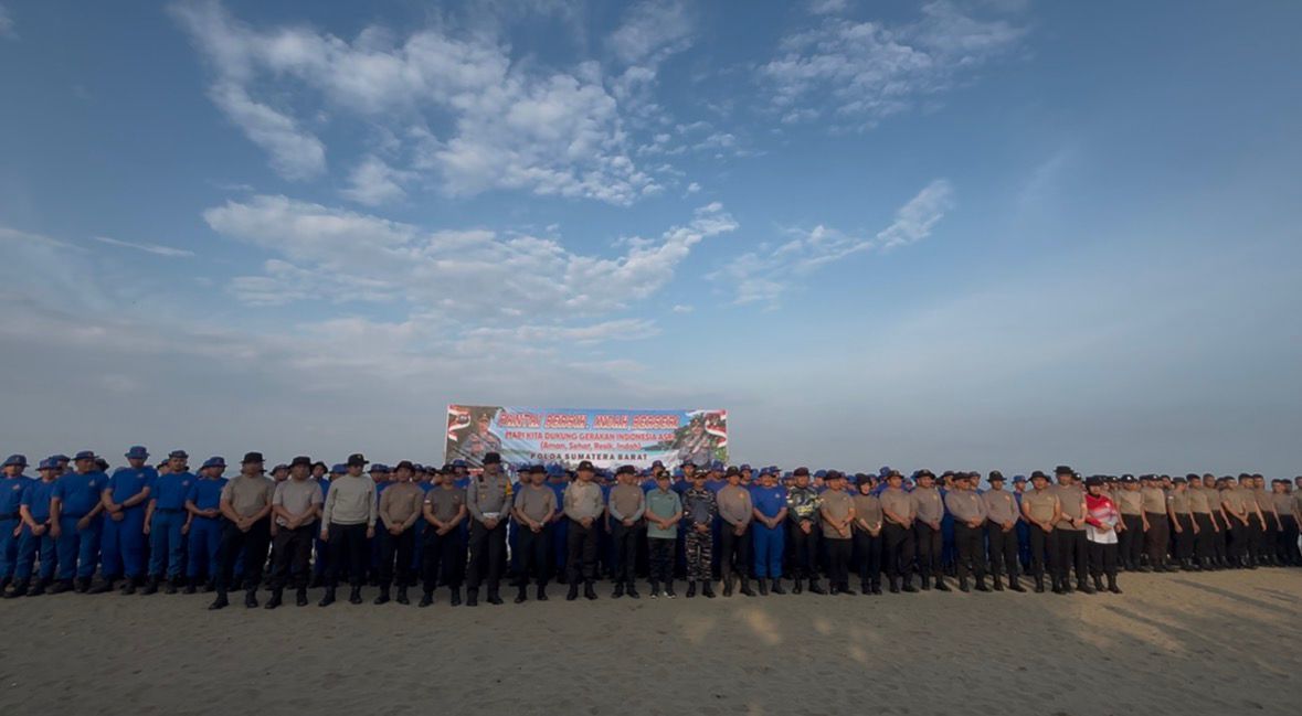 Aksi bersih pantai tersebut melibatkan personel Ditpolairud dan Ditsamapta Polda Sumbar, TNI AL, TNI AD, serta unsur TNI AU. Ratusan personel tampak menyisir sepanjang bibir Pantai Padang untuk mengumpulkan sampah plastik, kayu, dan limbah rumah tangga yang mencemari kawasan wisata andalan Kota Padang itu.