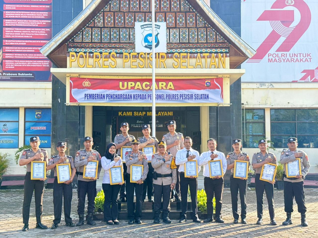 PESISIR SELATAN, HARIANHALUAN.ID — Kepolisian Resor Pesisir Selatan (Pessel) kembali menegaskan komitmen dalam meningkatkan kualitas pelayanan publik melalui pemberian reward kepada personel berprestasi. Penghargaan tersebut diserahkan langsung oleh Kapolres Pesisir Selatan, AKBP Derry Indra, dalam upacara yang digelar di halaman Mapolres Pessel, Selasa (10/2/2026).