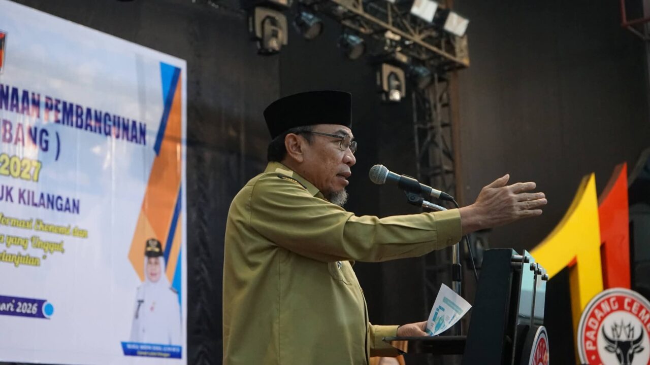 PADANG, HARIANHALUAN.ID – Pemerintah Kota (Pemko) Padang tegaskan integritas dan kualitas pelayanan publik sebagai kinerja mendasar bagi lingkup ASN Pemko Padang. Hal itu disampaikan Wakil Wali Kota Maigus Nasir saat membuka Musrenbang Kecamatan Lubuk Kilangan, di Gedung Serba Guna PT Semen Padang, Senin (9/2).